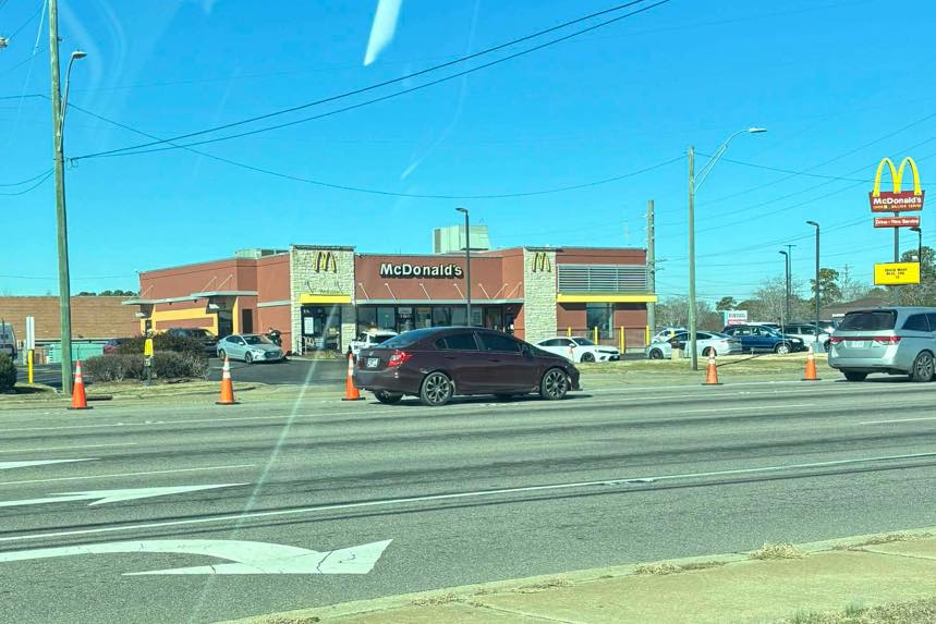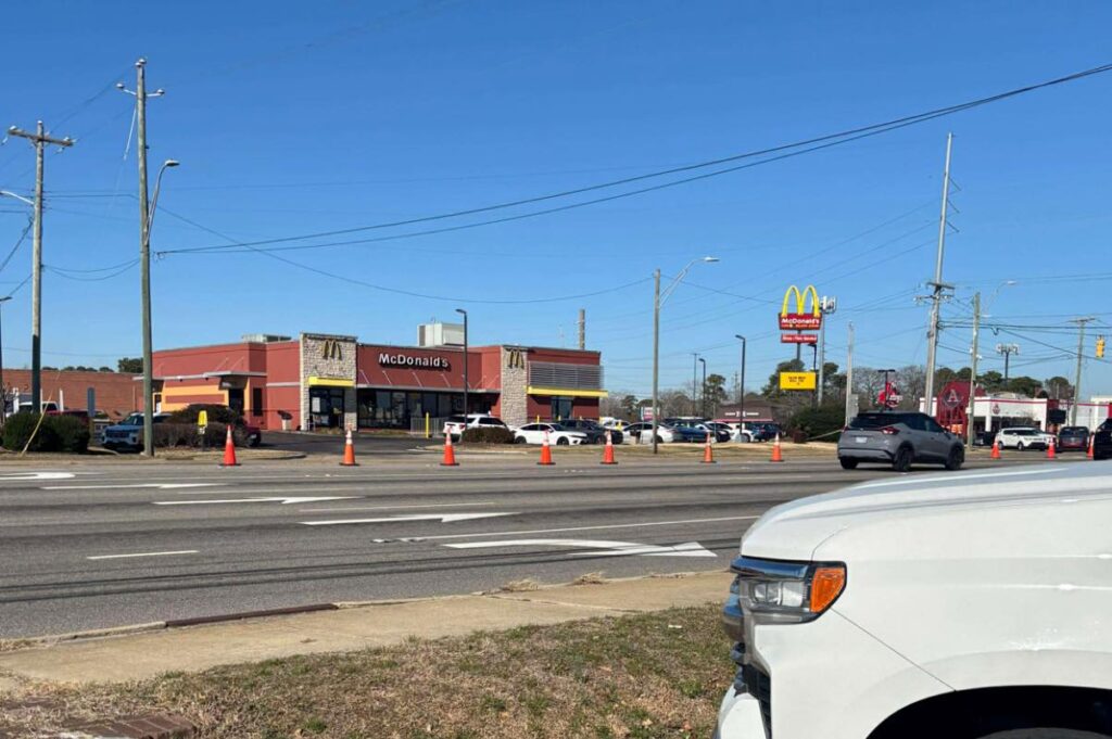 At the same time, active roadwork was underway at the Skibo Road and Morganton Road intersection, with bucket trucks, cones, and utility crews present. At this point, it remains unclear whether the cones placed in front of the McDonald’s were related to the police activity or part of the ongoing construction nearby.