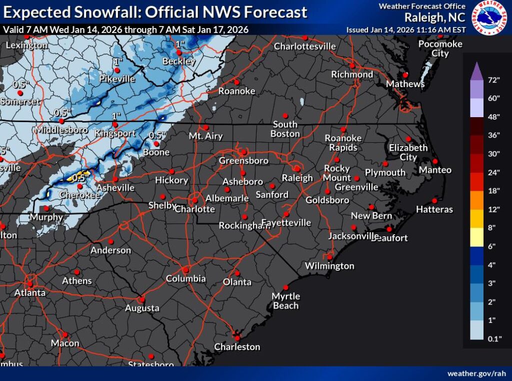 Fayetteville, NC — A sharp change in weather is expected across Cumberland County as colder air moves into the region late Wednesday night and settles in through Thursday. This system is forecast to bring the coldest temperatures of the week, along with brisk winds that will make conditions feel even colder than the actual readings.
